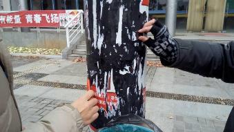 2014年12月11日上午,色情直播app 14级给排水四班举办了清除校园小广告团日活动,全体同学不畏寒冬,积极参与,成果斐然。